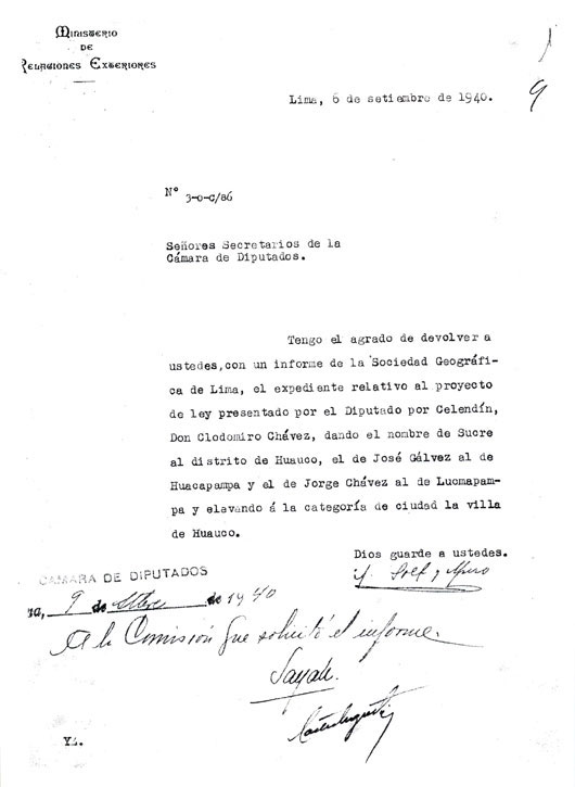 El HUAUCO por la Ley del 24 de noviembre de 1898 adquiere categoría de Villa, promulgada por el Sr. Presidente Don Nicolás de Piérola, así mismo: