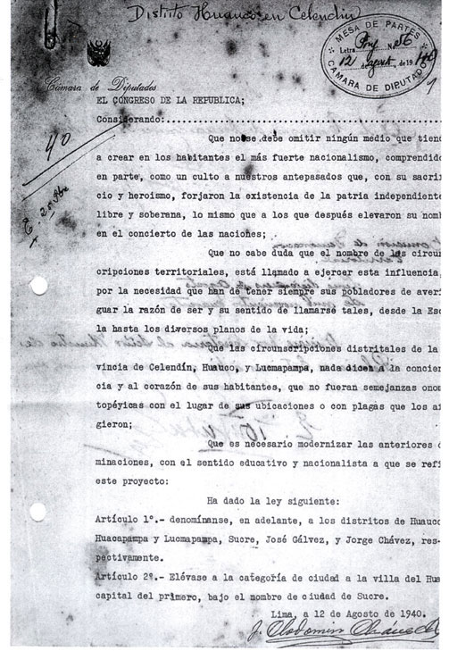 Huellas: Creación del distrito del Huauco, hoy Sucre.